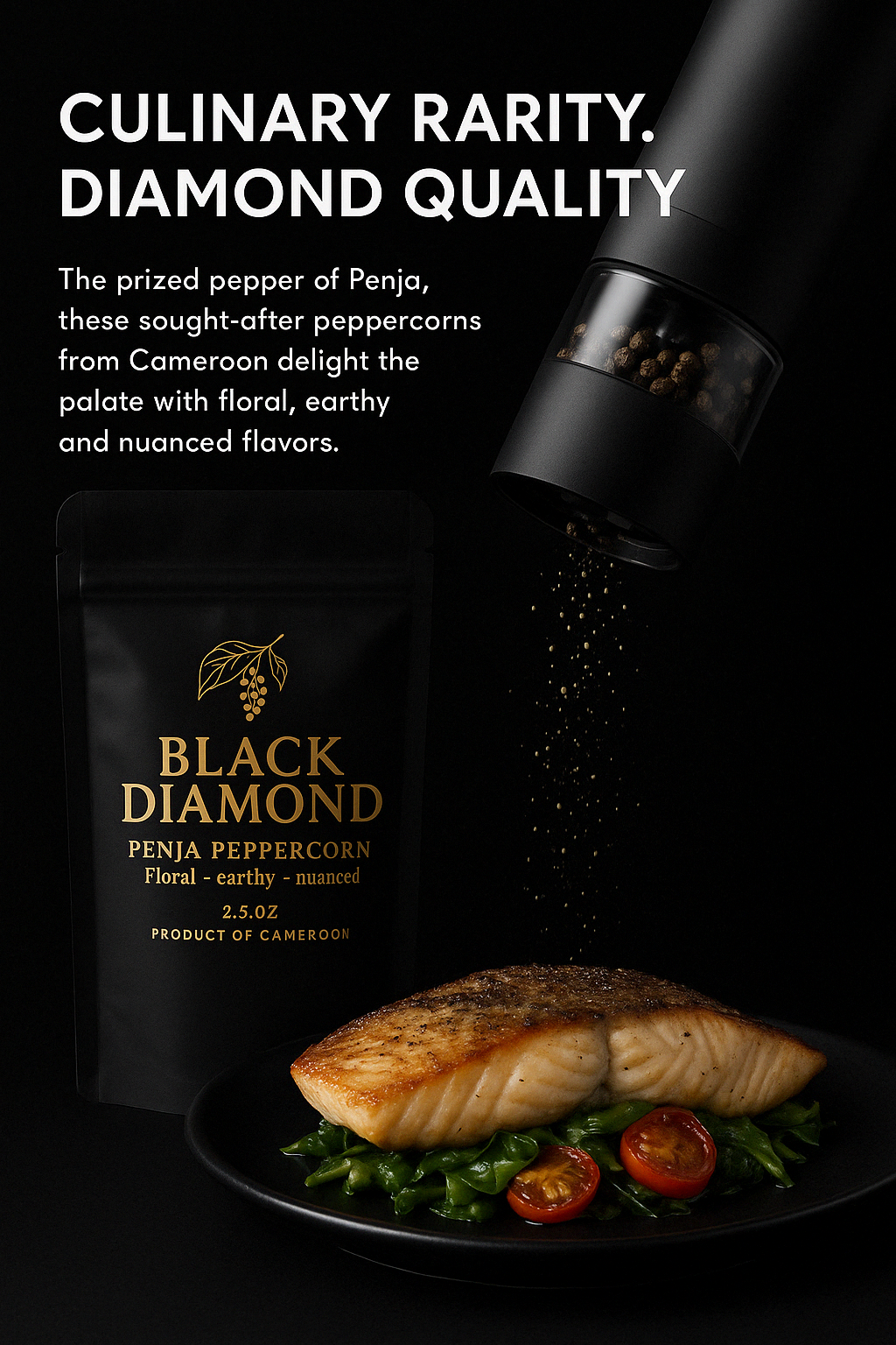 Penja peppercorn was cultivated in the volcanic soils of Cameroon, boasts more complex favors, with fruity notes, Penja peppercorns are popular amongst Michelin Chefs.